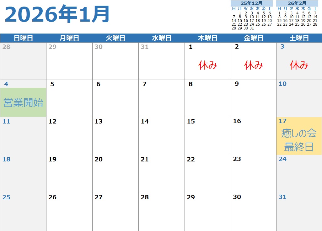 2025.12.23 2026年1月 短い間でしたけど 日本橋店お世話になりました🌈 今後の活動は公式LINEで💛 Tweet Share Hatena Pocket RSS feedly Pin it 12月のスケジュール